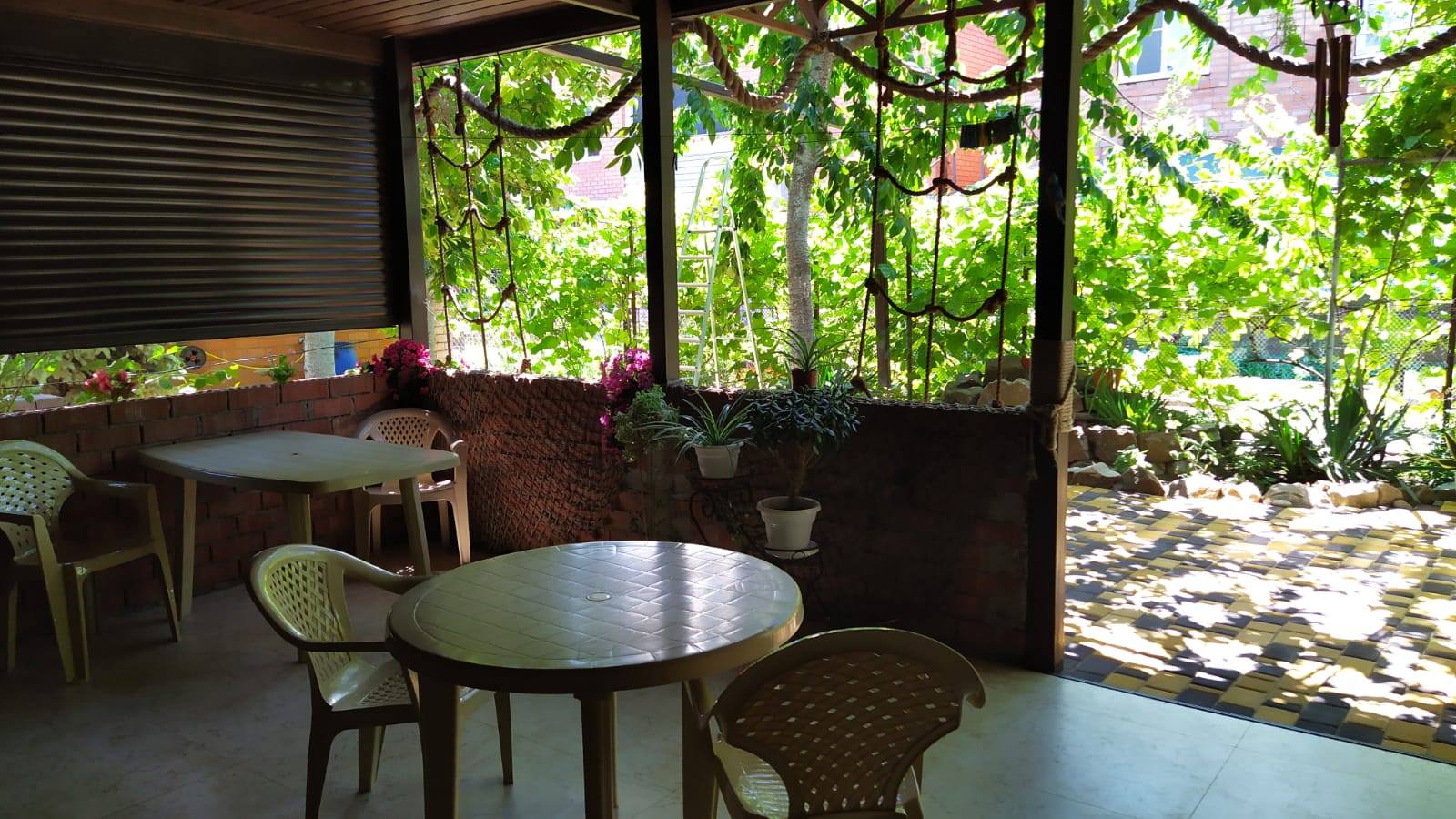 На территории «На Шмидта» есть общая кухня (2 газовые плиты, вся кухонная утварь, микроволновка), зонтики и столики, «живой» навес из винограда для отдыха и приема пищи.