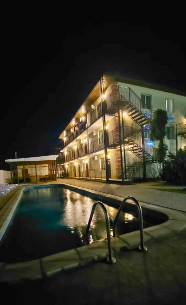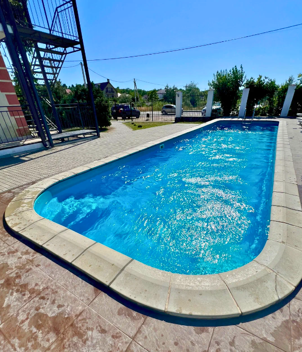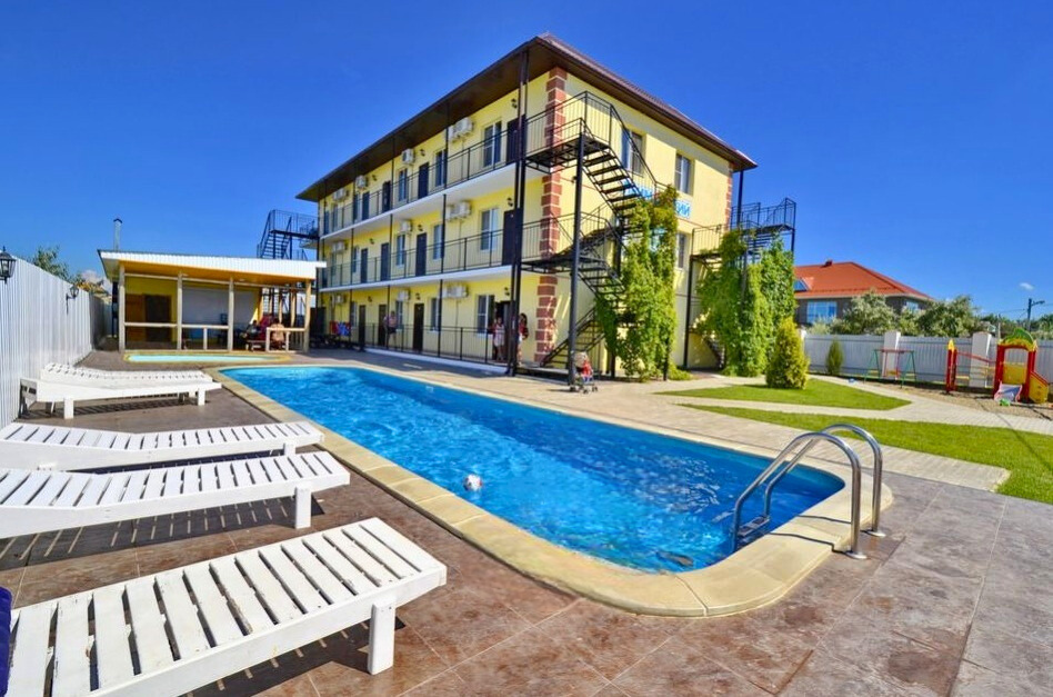 На территории есть взрослый и детский бассейны с постоянной системой фильтрации воды. Взрослый бассейн окружён небольшой площадкой с шезлонгами, где Вы сможете насладиться принятием солнечных ванн. Самые маленькие гости гостевого дома «Приморский» могут весело провести время на нашей детской площадке. Несомненно, Вам придется по вкусу летняя беседка рядом с бассейнами с десятью большими столами и летней кухней, оснащенной всем необходимым оборудованием, на территории имеются мангалы.