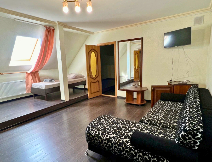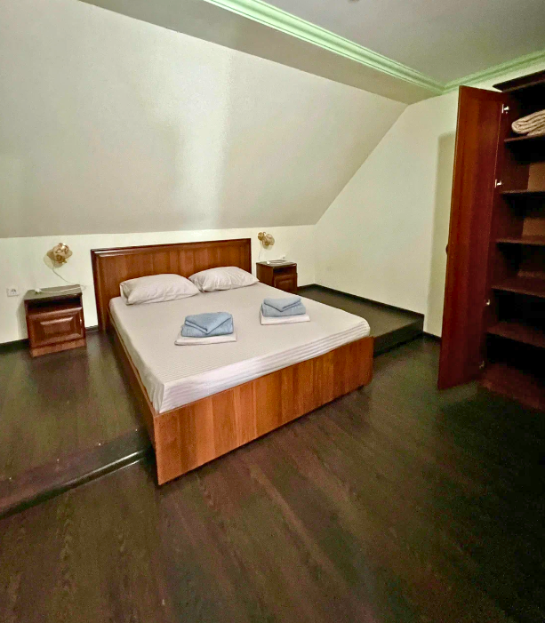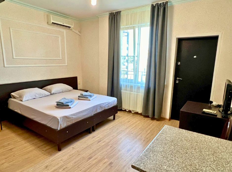 В номерах - односпальные, двуспальная кровати, раскладное кресло/диван, прикроватные тумбочки, журнальный столик, зеркало, сплит-система, ТВ, интернет. Имеются номера с балконом. Бесперебойная подача воды.