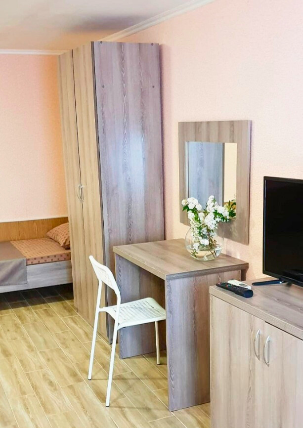В домовладении есть номера различного уровня комфортности, находящиеся в большом двухэтажном доме, а также комфортабельные одно- и двухкомнатные номера в двухэтажном корпусе. Во всех номерах есть телевизор, холодильник, кондиционер, санузел, набор необходимой мебели.