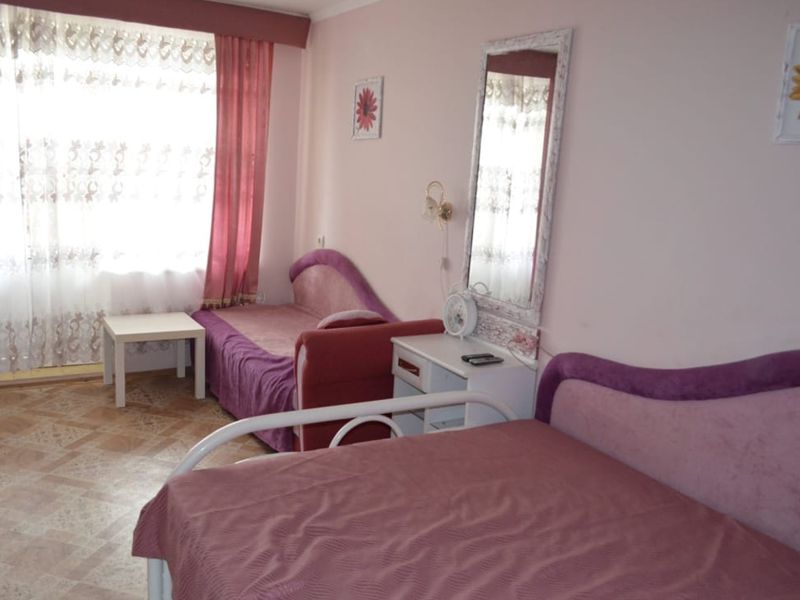 В каждом номере: кровать (диван), шкаф, тумбочка, телевизор, вентилятор.